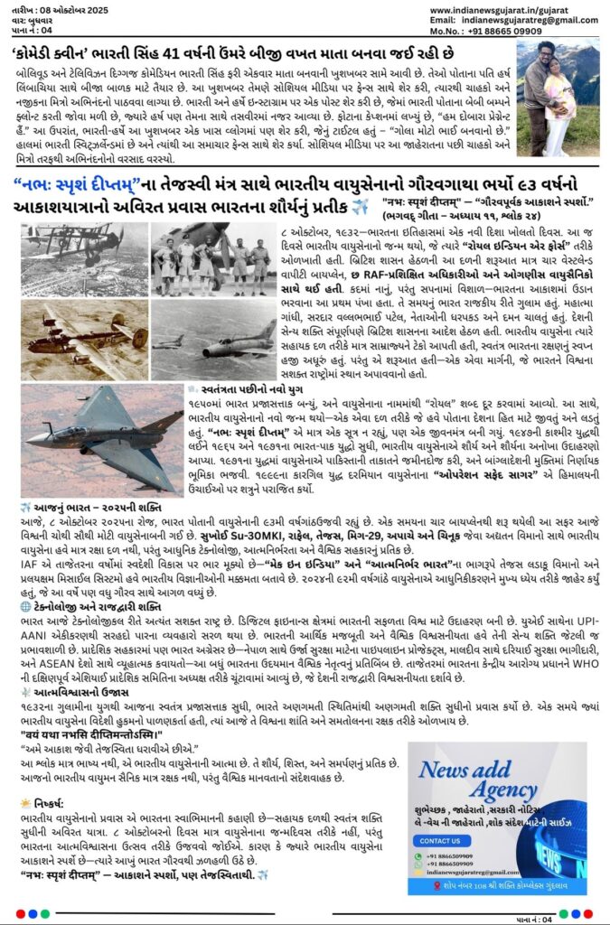 ઇન્ડિયા ન્યૂઝ ગુજરાત 08 ઓક્ટોબર 2025