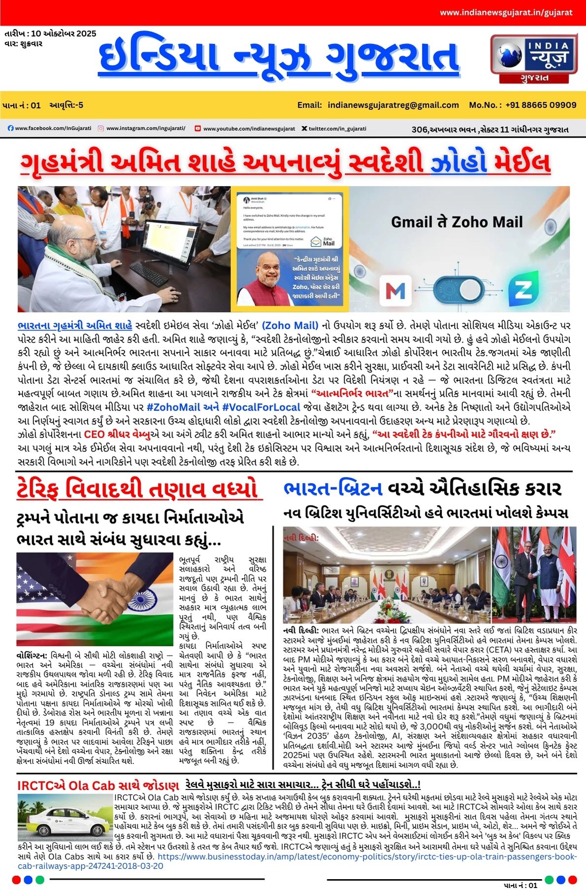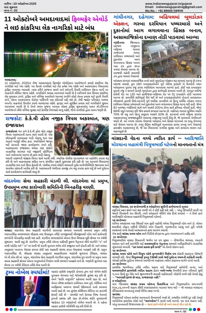 ઇન્ડિયા ન્યૂઝ ગુજરાત 10 ઓક્ટોબર 2025