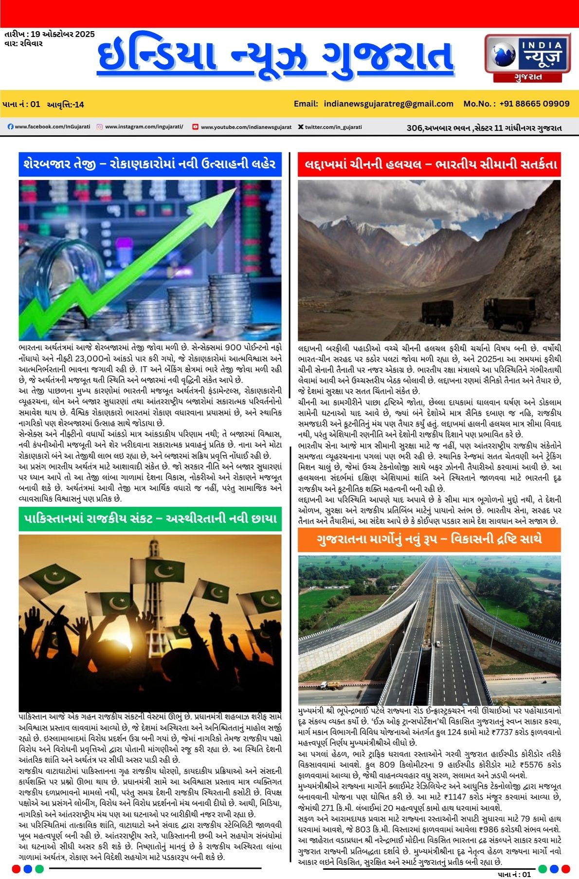 19 ઓક્ટોબર 2025, ઇન્ડિયા ન્યૂઝ ગુજરાત